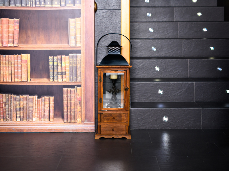 Sala común con biblioteca y sofás